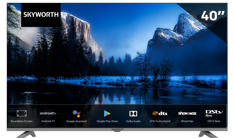 Skyworth 40 Inch Direct LED Backlit Full HD Android Smart TV with Built In Chromecast - Android 11 Operating System with Google Play Store, 1920 x 1080 Resolution, Aspect Ratio: 16:9, 2 x HDMI, 2 x USB Ports, Dynamic Contrast Ratio 1200:1, Brightness 200nit, 9.5ms Response Time, Internal Memory 1GB, Internal Storage 8GB, 8W x 2 Sound output, Google Assistant and Google Play, Built-In Wifi and Bluetooth Connectivity, 1x Ethernet LAN (RJ-45) Port, Digital DVB-T2 Tuner, Retail Box , 2 year Limited Warranty