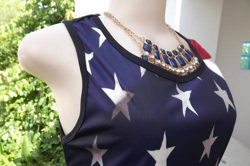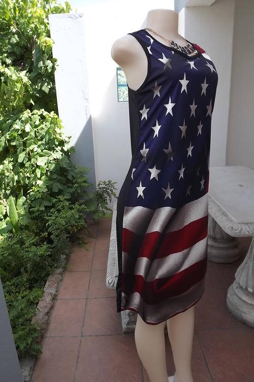 Sleek Dress in Firm Polyester with American Flag on front - stars & stripes - size 10/34 - new