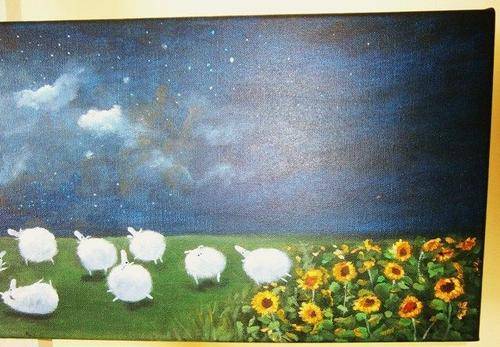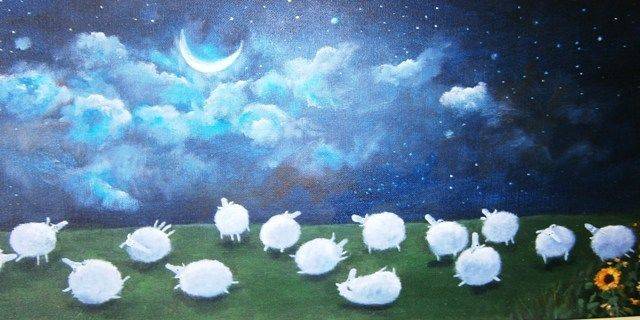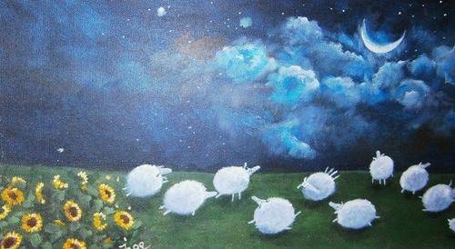 Sleepy Sheep - A beautiful, trendy painting by Inge.