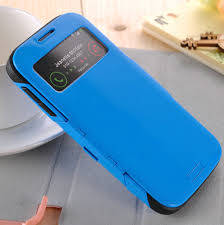 Slim Armor Viewing window Automatic Sleep/Wake case for Samsung Galaxy S4 Blue