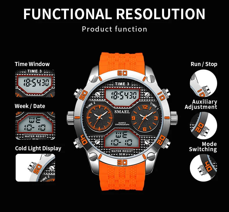 SMAEL Shock Proof Sports Chrono 5ATM WATER RESISTANT **BRAND NEW**