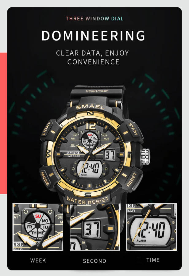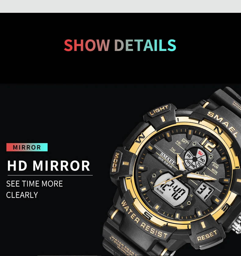 SMAEL Top Luxury Brand Men`s Watch Outdoor Sports Watches Dual Time Display Black Only !!!!!!