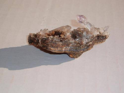 Small amethyst - Tipped quartz crystal on matrix from Goboboseb, Namibia