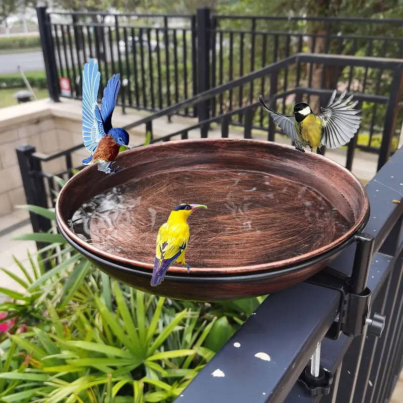 1 Outdoor Bird Bath, 11.5 Inch Deck Mount Bird Bath with Metal Wild Bird Feeder, Sturdy Steel Clamp for Garden, Patio, Railing