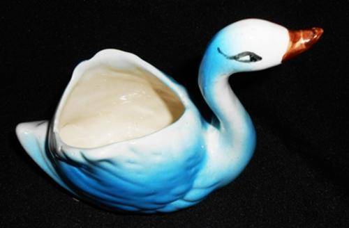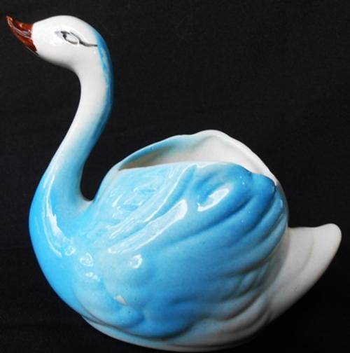 This little swan is in good condition, there is one place that feels like a chip but as it is under the glaze it is not damaged.12 cm high and 16 cm long.