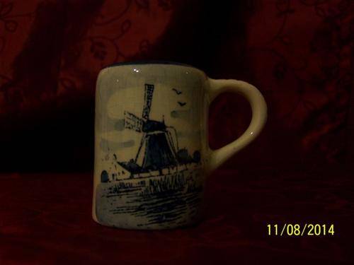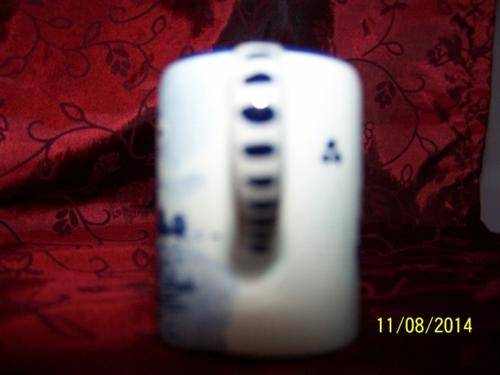 Cute small mug as per photos. has a small chip on rim ( hardly noticeable) and age cracks .