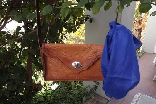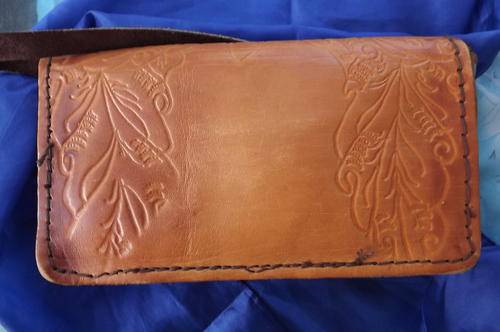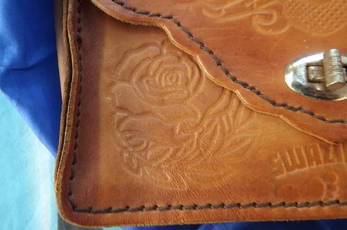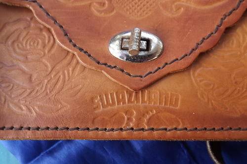 Small Genuine Leather Sling Bag with Craftwork - made in Swaziland - very good condition - 12x21cm