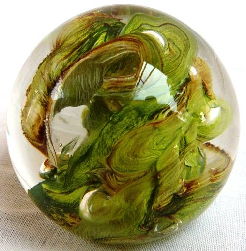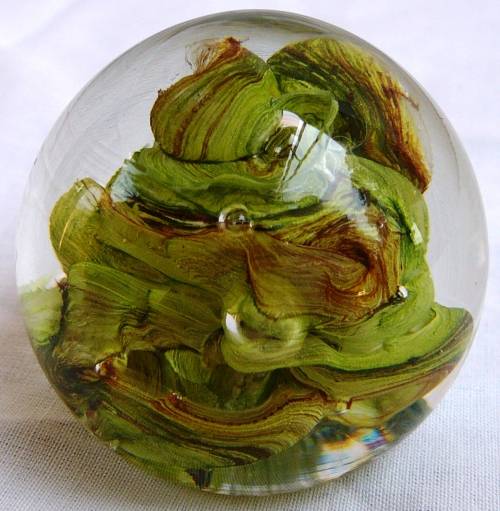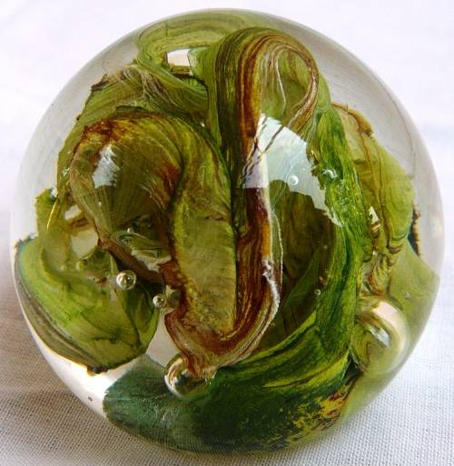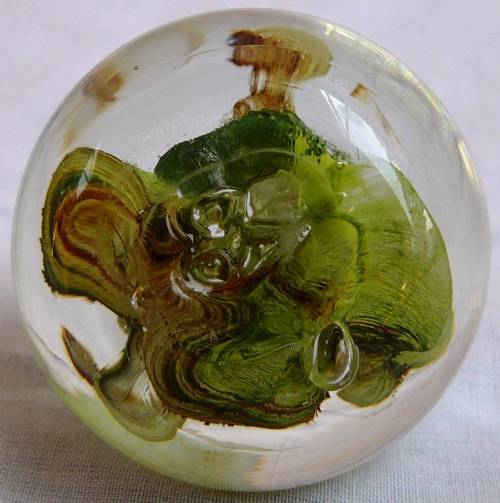 This very pretty round paperweight is in very good condition, there are no marks of origin. It is 45 mm high, diameter is 47 mm and it weighs 142 grams.