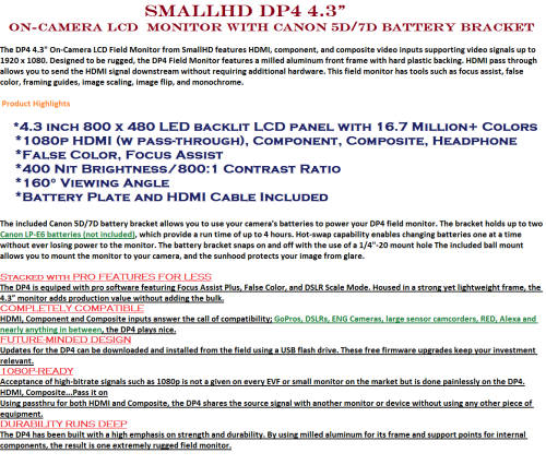 ALMOST NEW CONDITION SMALLHD DP4 MONITOR