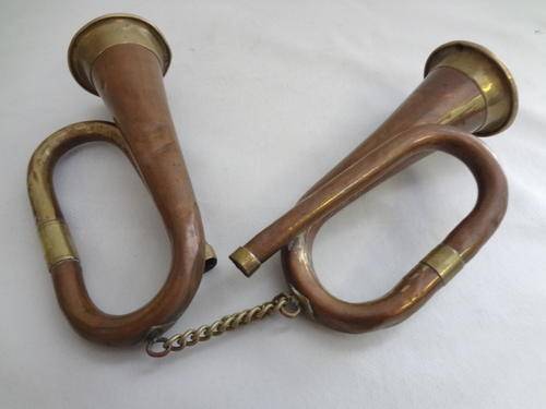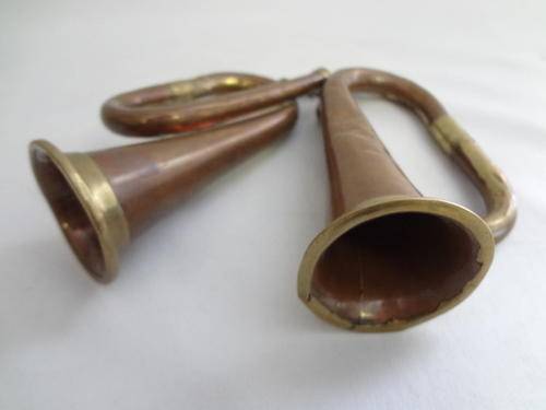 Small musical copper and brass instruments - as per photo
