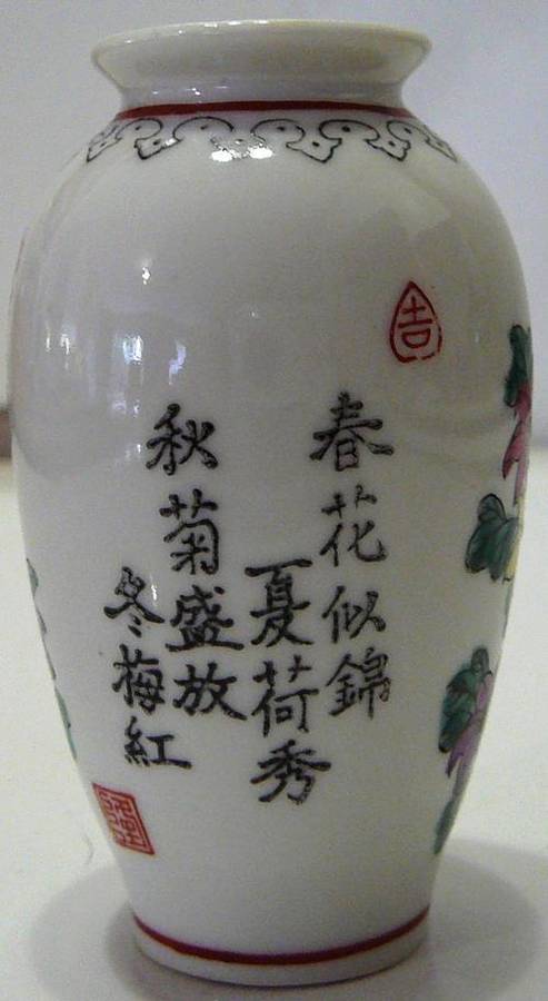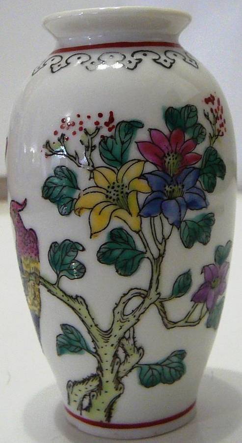 This pretty little vase is in very good condition, there are no marks of origin. It is 93 mm high, base diameter is 32 mm and it weighs 80 grams.
