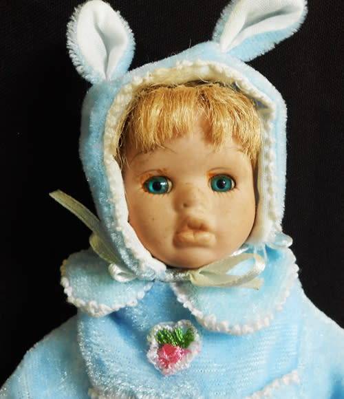this little porcelain doll is 18 cm high. it is very clean and there is no damage to the doll