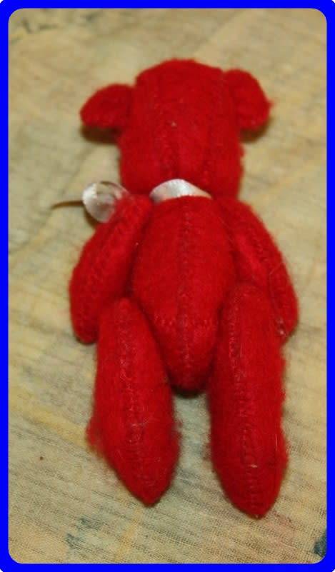 SMALL RED FELT VALENTINES TEDDY BEAR WITH ARTICULATED ARMS AND LEGS LOOKS HAND CRAFTED