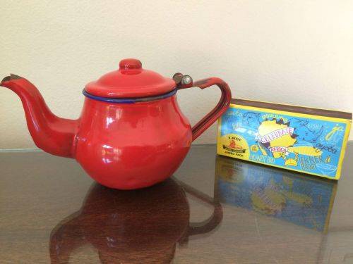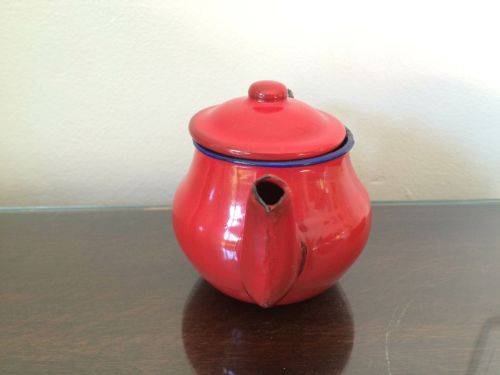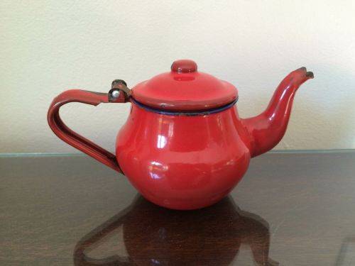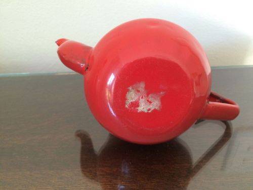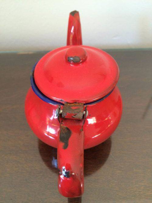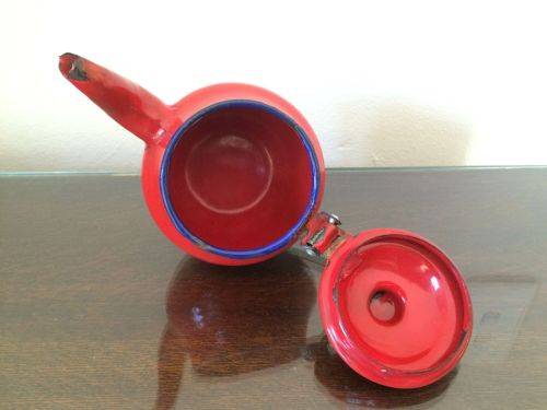 Some enamel pieces have been chipped off on the tip of the spout, the lid and the handle.