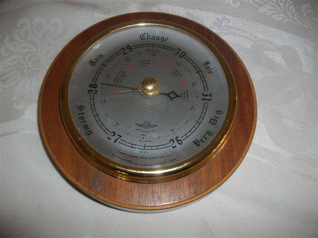 Small round wooden vintage barometer made in england item is currently not working in need of some tlc or repair otherwise the condition is goodplease have a look at my other listings *free sprit*Thank you