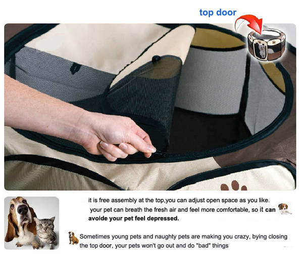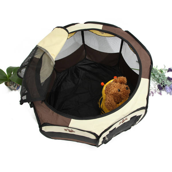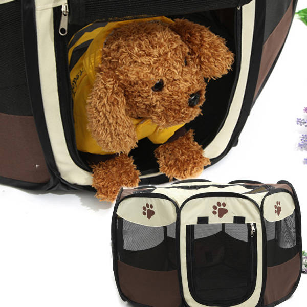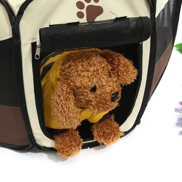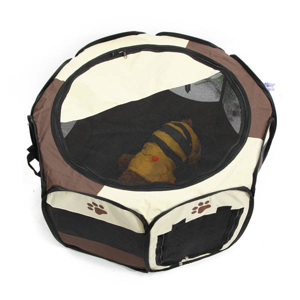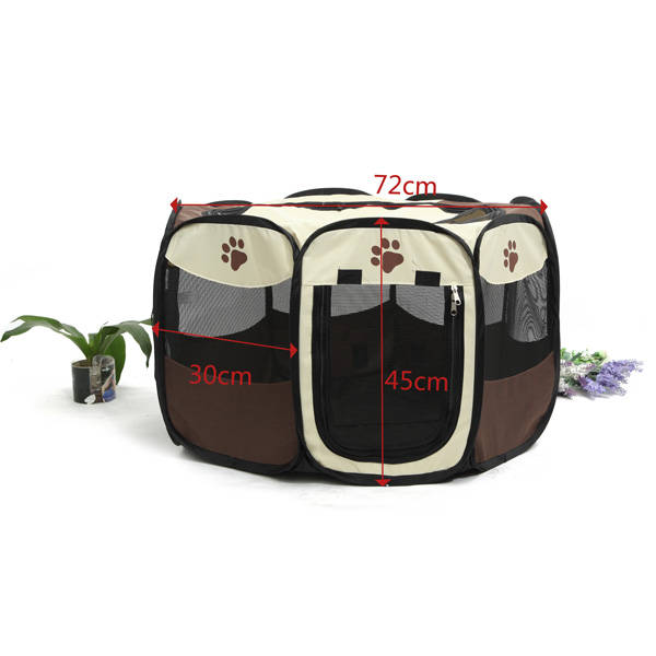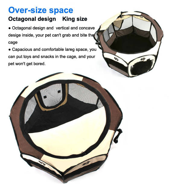 Description: Small-Size Octagonal Pet Dog Cages Dog Tent Dog House ¿¿¿Use PVC plastic net, which is both flexible and tough, your pet will be comfortable. ¿¿¿Use 600D thick oxford, so the pet cage is solid and durable, you can use it for at least 3 years. ¿¿¿The pet cage has general water resistance, and it's easy to clean. ¿¿¿The pet cage is safe and environmental friendly, and has no odors. ¿¿¿Ventilation design makes your pet comfortable. ¿¿¿Fine workmanship,configured zippergate both at the top and boardside, which is convenient. Specification: Material: PVC plastic net, 600D oxford Weight: 773g Size: 72*45*30CM Package Includes: 1 x Small-size Octagonal Pet Dog Cage