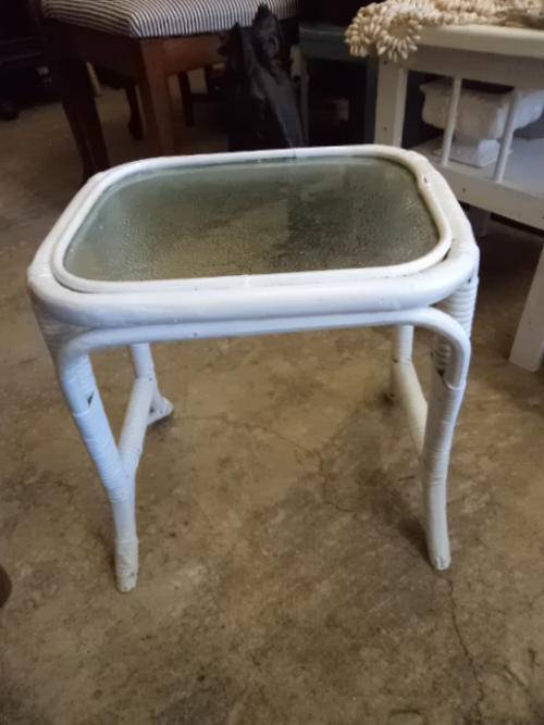 Small white painted side table. size: width 36cm. depth 28cm. height 40cm.