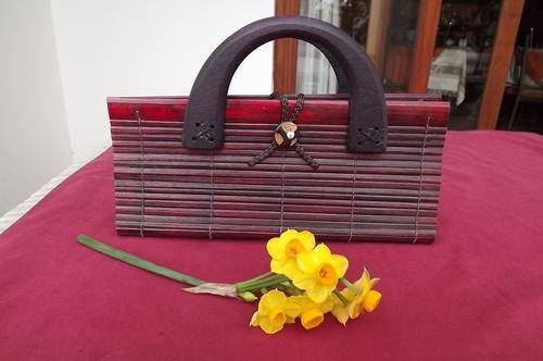 Small Wooden Slat Handbag with Wooden Handle - very handy - 11.5x25.5cm