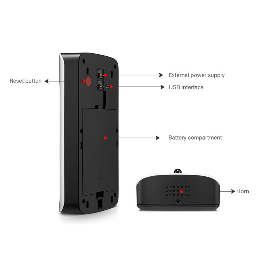 Package weight: 0.26 kg Specification: Color: Silver Material: ABS Plastic + Electronic Components SNR: > 390B Interlens Angle of View: 1.7mm F2.4/166 degrees Night vision: automatic switching of double filters, 6pcs 850 Nw 28Mn high-power infrared lamps, night vision 10 meters Resolution: 720P Speech: Two way Talk, with Echo Cancellation Wireless Network: 802.118/c/N Wireless Network Security: WPS Security Encryption Wireless Connection: One-click WIFI Configuration Video Way: Mobile Detection Video, Door Bell Key Trigger, Manual Video Storage: TF card storage maximum support 32G (excluded) Power Consumption: Standby Current: 400uA. Working Current: 200MA Working environment: working temperature: - 10¬トテ~ 50¬トテ, working humidity < 95% Installation Method: door wall hanging installation Package includes: 1 x Doorbell 1 x Screws Pack 1 x User Manual