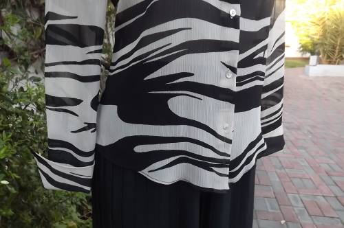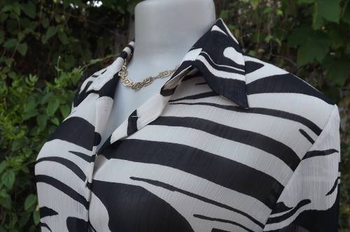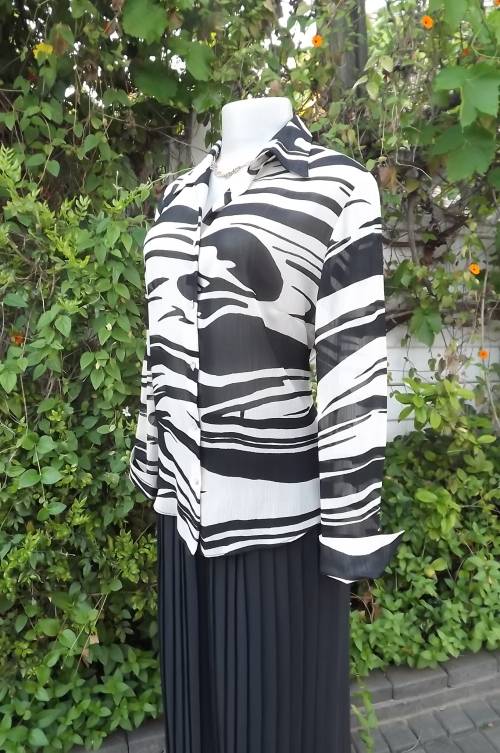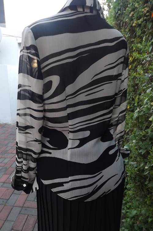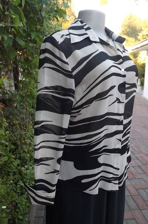 Smart black/beige textured long sleeve blouse in animal print.Size 34/10 by EXACT.Button down front