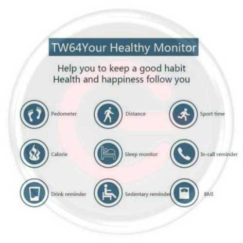 With the function of pedometer, distance/calorie calculating, sport/drink time reminder, sleep monitor.