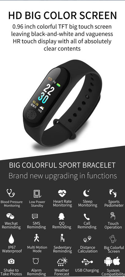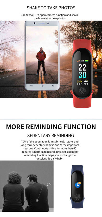 | Main Function | Multiple motion mode, Weather Forecast, Blood Pressure, Heart Rate, Step, Calories, Distance, Sleep monitor, Sport, Call reminder, Alarm Reminder, Can share real-time data, Social share(Wechat, QQ, Facebook, Twitter), Shake hand to take phonto, etc. |