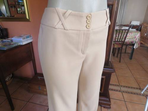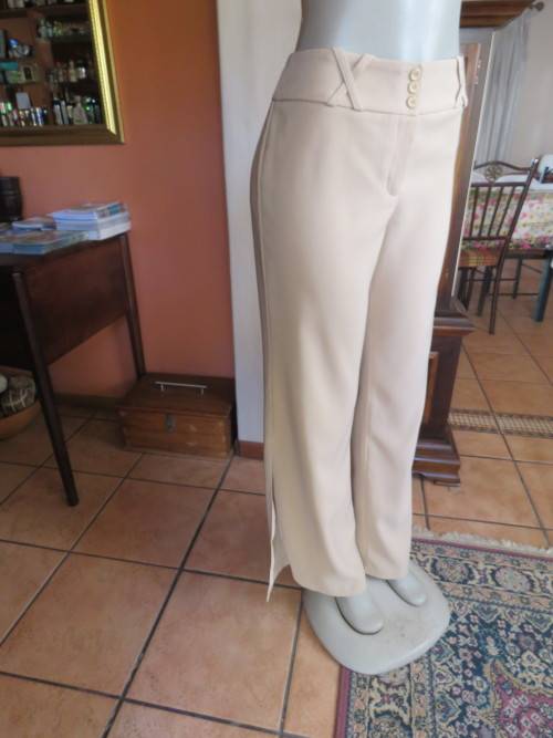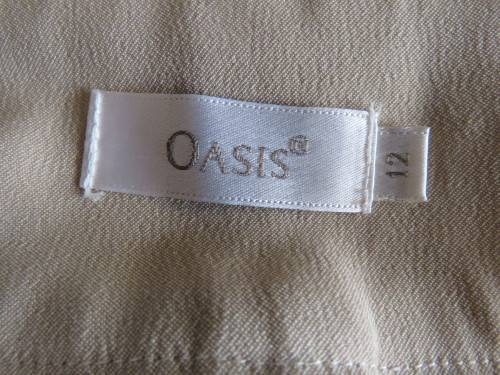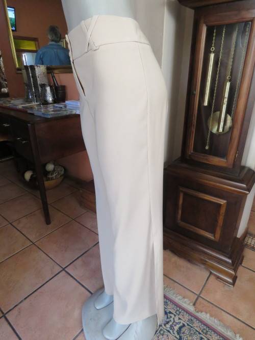 Smart cream colour pants by 'OASIS'.Size 36/12.Bootlegged with long slitted sides.In polyester with silky inner.Wide waistband with belt loops.New condition.
