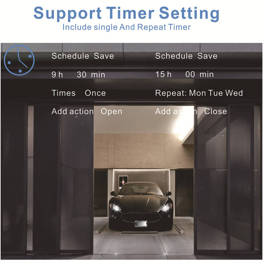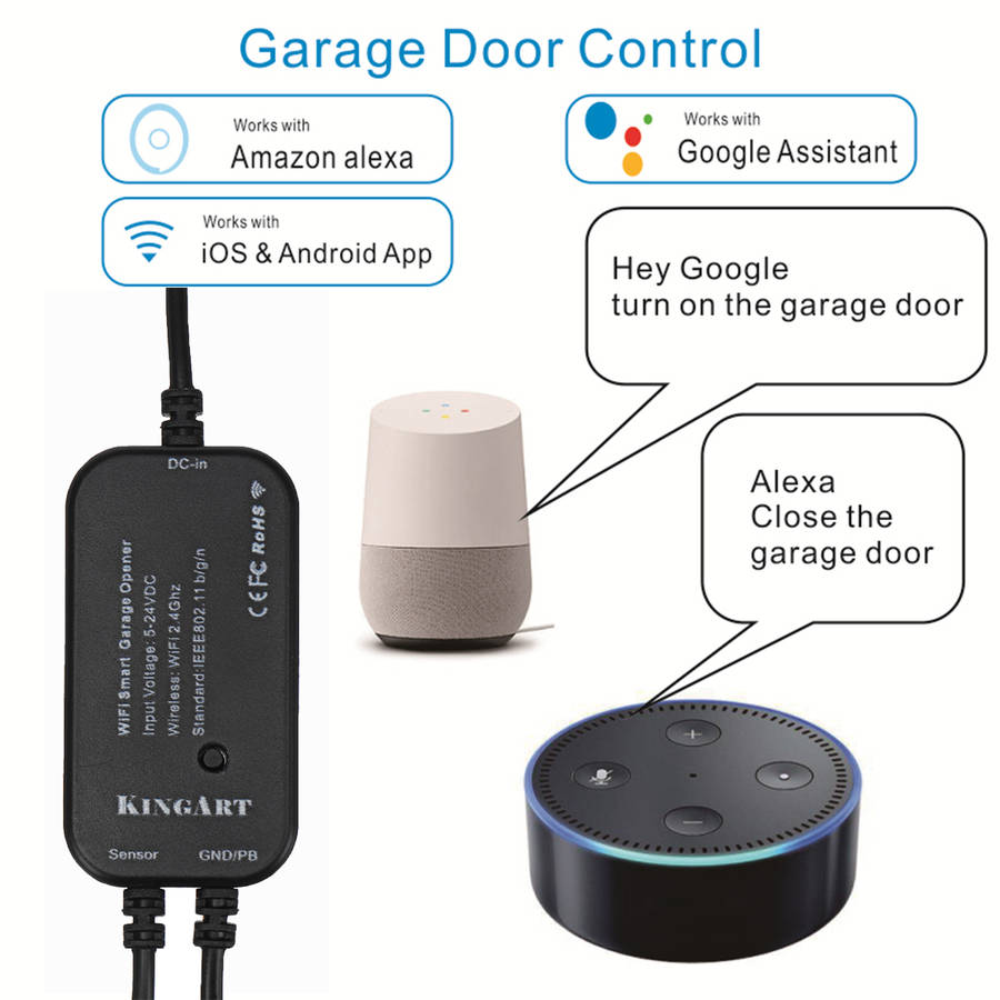 Features: SMART WIFI GARAGE DOOR CONTROLLER/OPENER- This wifi smart controller support 5-24VDC power, which can work with most electric door motor, connect to your smartphone and control your home appliances with ease. INTELLIGENT AND STRONG FUNCTION- The user can control this Wi-Fi plug-in via the voice via the Alexa / Google device to turn off the switch whose support timer function (works in offline state) that includes countdown; single and repeat timers can be Set Max. 8 groups of timer APP REMOTE CONTROL - The user can use a smartphone to remotely control the home electronics remotely anytime, anywhere as long as the phone has 2G / 3G /4G/ WIFI network compatible with iOS and Android operating system with eWeLink/Smart Life APP TIMING FUNCTION - The intelligent timer switch will automatically turn on/turn off after setting a timer for this switch, which is essential for daily scheduling, and bring you a comfortable and intelligent lifestyle. Specification: