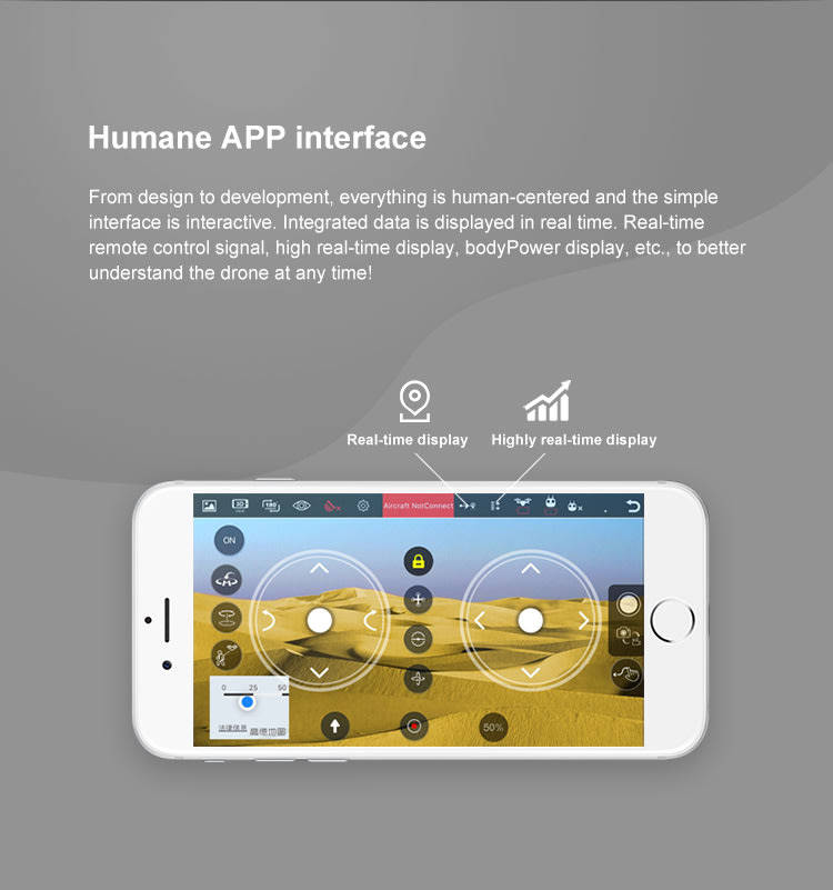- One key return, 360 Degree flip, height lock function, Aerial photography, Phone control, Real time map pass