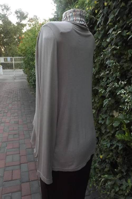 Smart long sleeve beige top with rounded front, in size 38/14 by Fengo. In good condition