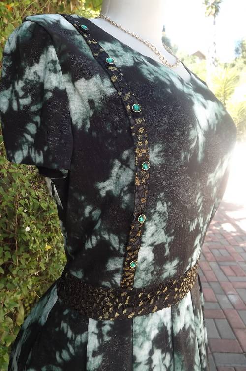 Smart mintgreen/black glimmer dress for that special date.Size 36/12 by FEICUIYIREN. A new fashion vogue classic dress.Rayon/polyester with lining. Decoration on front.New dress