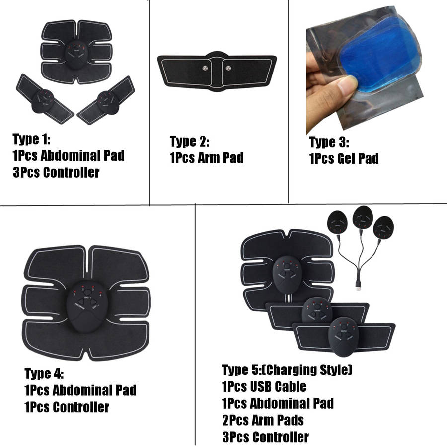 Type 5:(Charging Style) 1Pcs USB Cable 1Pcs Abdominal Pad 2Pcs Arm Pads 3Pcs Controller