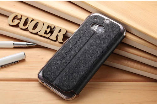 Smart Wake up & Sleep S View Window case for HTC ONE M8 (Black)