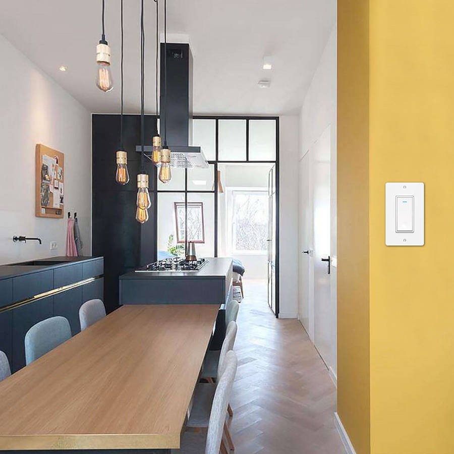Specifications: Type: Smart WIFI Wall Light Switch Color: White Material: PC+ABS V0 Input: AC100-240V 50/60Hz Electrical Rating: Max 1200W Resistive,400W Incandescent 1/2 HP at 120V AC Indicator Light: Blue (Off)/ Red (On)/ Green (Network) Working Temp: -20-50a Wi-Fi Standard: 2.4GHz 802.11 b/g/n WiFi 2.4GHz (Only For Residential and indoor Dry L'ocation Use) Product Size: 115*70*48mm Certification: FCC/ROHS/CE/UL Compatibility: Work with Google Assistant / Work with Amazon Alexa / Work with IFTTT Functions: Remote Control / Wi-Fi Connection / Protect / Timing / Schedule / Push it CAUTION:The switch is designed only for use with permanently installed fixtures.