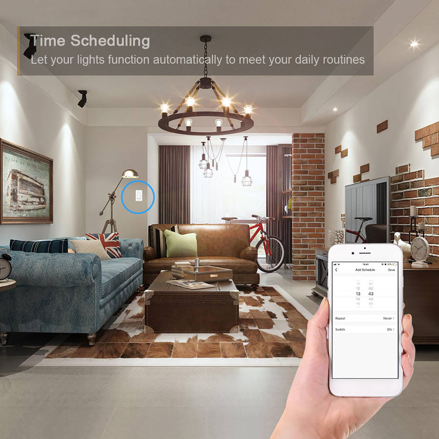 aSet Schedules for Lights Single/ Repeat/ Delay/ CycleUsing the free 'Smart Life' APP, you can schedule a lamp to turn on at sunset, or turn on a fan before you arrive by scheduling.