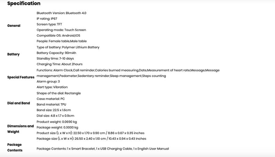 Main Features: Bluetooth 4.0 chip, low consumption and fast-paced IP67 waterproof, not afraid of rainy days or any outdoor activities 0.96 inch TFT color screen, show you high resolution images Kinds of app notifications, Wechat, Facebook, Twitter, QQ, WhatsApp, Skype, Line, G-mail Da Fitapp download, check your sports data on your phone