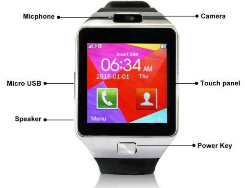 Smartphone Wrist Watch - SIM CARD, Bluetooth, Camera, Sleep Monitor, SD Card, MP3 etc. - Silver