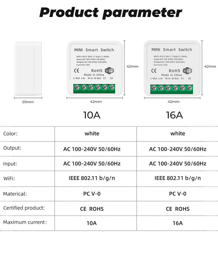 WiFi standard: 2.4GHz 802.11 b/g/n