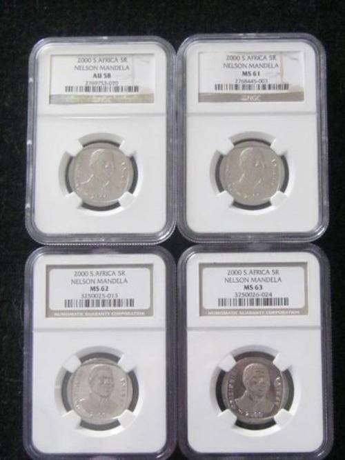Four lovely high grade Mandella Birthday coins 2000 AU58, MS 61, MS62, MS63