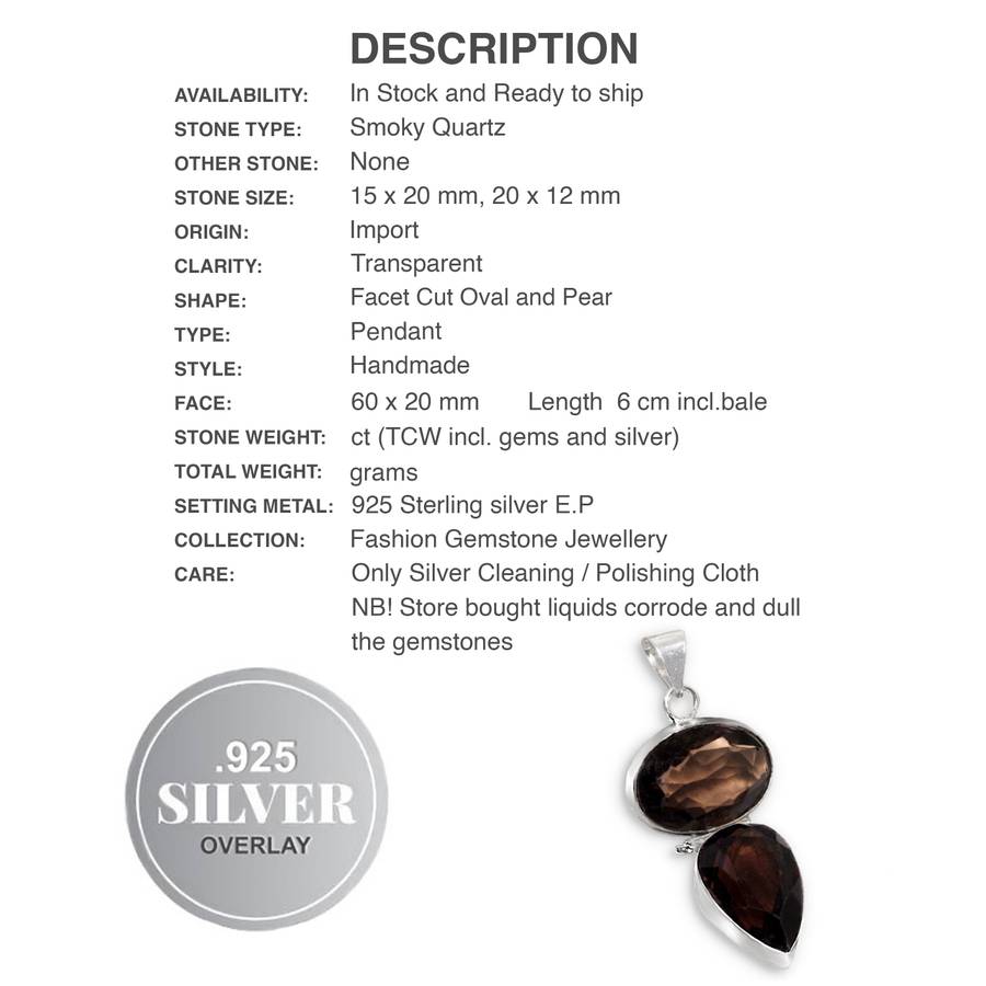 HANDMADE SMOKY TOPAZ MIXED SHAPE GEMSTONES PENDANT