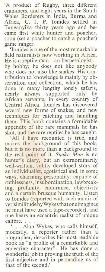 Snake Man - The Story of C.J.P. Ionides By: Alan Wykes