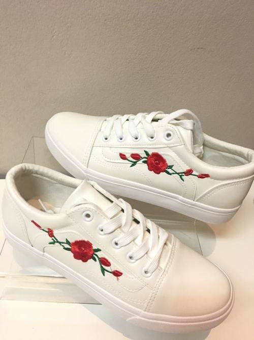Beautiful floral sneakers available in Black and White with Red floral detail