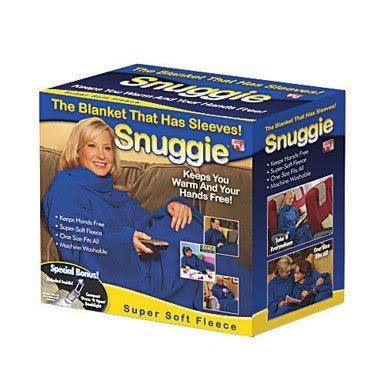 SNUGGIE- blanket is the super soft blanket that has sleeves. It does not slip and slide like a regular blanket,so it keeps you warm from head to toe while allowing complete freedom of movement. Read, eat, sew, use the remote, talk on the phone or work on your laptop in complete comfort. You can also use outside to keep warm at sporting events!