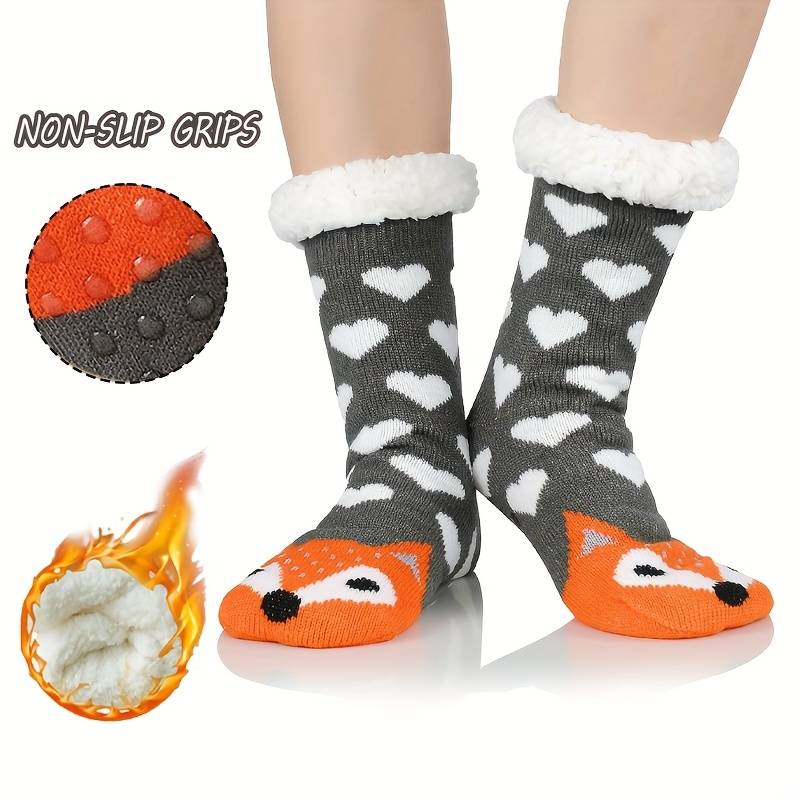1 Pair Women's Heavyweight Plush Socks - Non-Slip Grip Interior, Thick Warm Wint