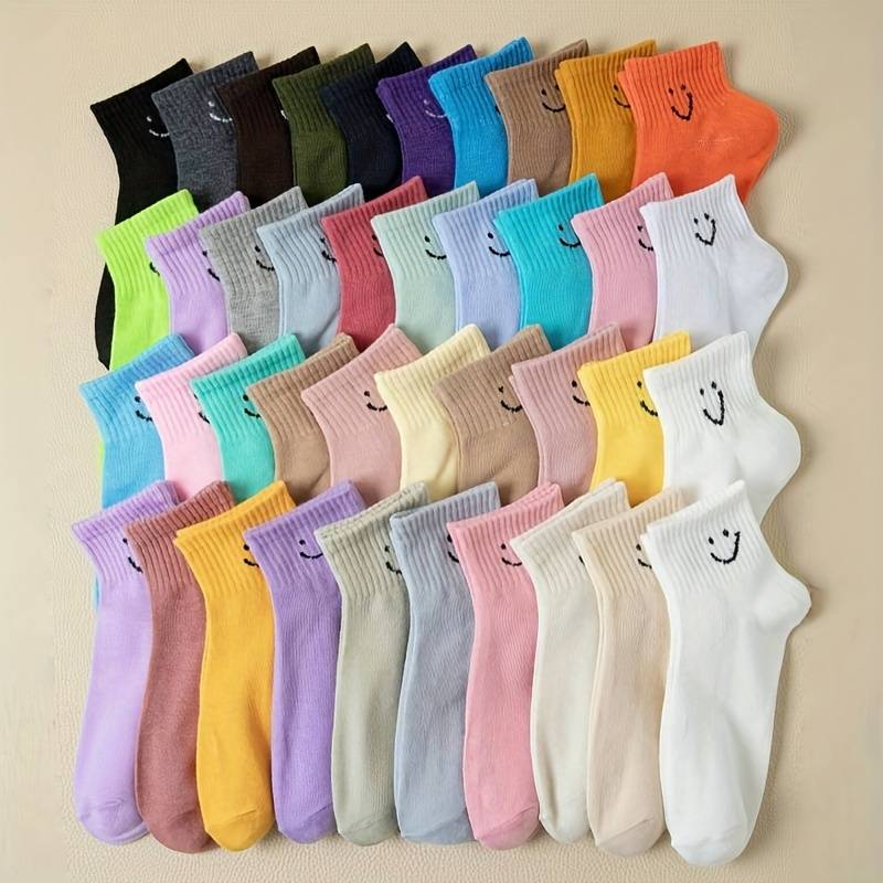 10/20 Pairs Women's Cartoon joyful Face Ankle Socks - Breathable Moisture-Wickin