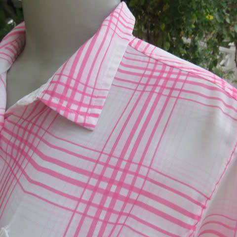 Beautiful white and pink check soft and silky long sleeve top n 100% polyester chiffon. By WOOLWORTHS n size 30/6. Pocket on front. Yoked back. Button down front with shirt collar. New condition.