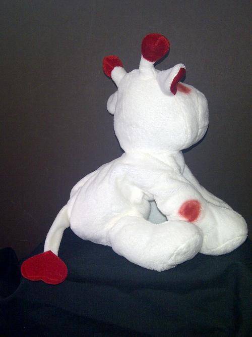 A Soft cuddly cow with "Wild about You" written on her foot. She is about 23 cm high and in excellent conditio