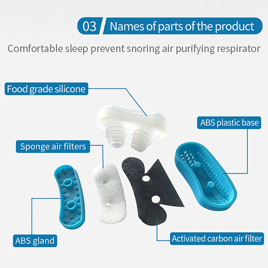 Package weight: 0.03 kg Features: 1. Obstructive Sleep Apnea (OSA) is typically caused by a blockage of the airway when the soft tissue in the rear of the throat collapses during sleep. Untreated, OSA causes a number of serious health problems, including high blood pressure, cardiovascular disease, memory impairment, weight gain, and headaches. The standard treatment for OSA is what is known as “Continuous Positive Airway Pressure,” or CPAP. 2. PM2.5 fine particulate matter means the particulate matters in air, which has less than 2.5um diameter. It can susped in air for long time and it indicates the air pollution index, high density means serious air pollution. In spite of only a small portion in atmosphere, but PM2.5 has important effect to air quality and visibility. Compare to the big particulate matters, PM2.5 is micro_size, big area, strong activity, easy to carry with toxic substances(such as heavy metal, microorganism etc). In addition, it stays long time in air and transport long distance, so it has serious influence to body and environmental quality. Five harms: Harm to your lungs, harm to your heart, harm to your blood vessel, harm to your skin and harm to your brain. 3. CPAP masks have a hard time maintaining a perfect seal onto your face as you move during sleep. The sound of rushing air will wake up not only you but also your partner. The hoses used by CPAP masks drag on the end table and on the bed, causing sleep disruptions. But Airing creates a tight fit inside your nostrils with no hoses to catch on anything. Better yet, snoring is eliminated. liberates you. Think about how liberated you could be with not just one good night's sleep, but hundreds of them. Think about health problems you will avoid. Think about the energy you will have. Think about how much more productive you will be at work, the potential car accidents you’ll avoid, even your golf handicap decreasing by 3 shots. In short,think about how liberated you will be when you start using Airing to manage your sleep apnea.Soft, comfortable silicone engineered to stay firmly in the nostril, forming a perfect seal without the need for straps.