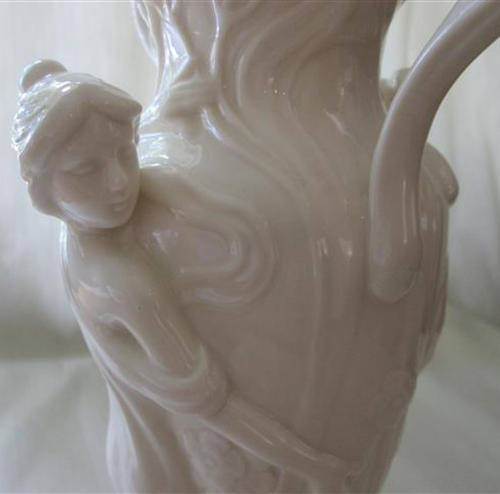 LARGE, TALL, SLIM AND GRACEFUL CERAMIC VASE IN THE STYLE OF ART NOUVEAU. THE VASE IS A SOFT, SLIGHTLY OFF WHITE COLOUR AND THE CONDITION IS AS NEW, HEIGHT 31cm INCLUDING HANDLES.