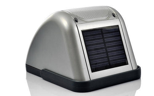 Solar and dynamo powered outdoor security light with PIR Motion detection, a bright 200 Lumen lamp, and a built in battery giving 10 days of power when fully charged.